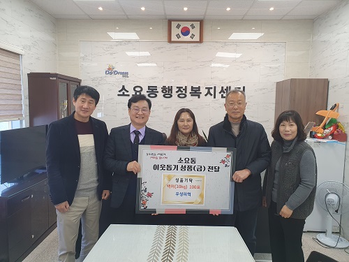 µ¿µÎõ½Ã ¼Ò¿äµ¿ ÇàÁ¤º¹Áö¼¾ÅÍ(µ¿Àå ÀÓ±âȯ)´Â Áö³ 13ÀÏ °ü³» ¾÷üÀÎ ¿ì¼ºÇÇÇõ(´ëÇ¥ Á¤¼ÒÇö)¿¡¼ ¿¬¸» ¼Ò¿Ü°èÃþ °¡±¸¿¡°Ô Àü´ÞÇÒ ¹é¹Ì 10kg 100Æ÷¸¦ ±âŹÇß´Ù°í ¹àÇû´Ù.