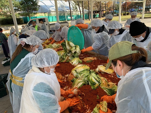 À̳¯ Âü¼®ÀÚµéÀº Ãß¿î ³¯¾¾¿¡µµ ºÒ±¸ÇÏ°í °ü³» Ãë¾à°èÃþ 150¿© °¡±¸¸¦ ´ë»óÀ¸·Î Á¤¼º²¯ ¹ö¹«¸° ±èÀå ±èÄ¡(10kg)¸¦ Á÷Á¢ Àü´ÞÇß´Ù.
