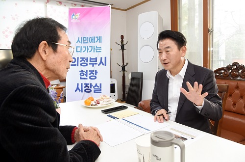 ±èµ¿±Ù ÀÇÁ¤ºÎ½ÃÀåÀÌ 12¿ù 1ÀÏ ½Å°î´ë¿ì¾ÆÆÄÆ®°æ·Î´ç¿¡¼ ‘ÇöÀå ½ÃÀå½Ç’À» ¿°í ½Ã¹ÎµéÀÇ ¸ñ¼Ò¸®¿¡ ±Í¸¦ ±â¿ï¿´´Ù.