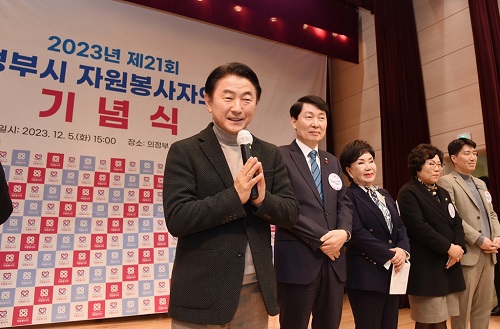 ÀÇÁ¤ºÎ½Ã(½ÃÀå ±èµ¿±Ù)´Â 12¿ù 5ÀÏ ½Ãû ´ë°´ç¿¡¼ ÇÑ ÇØ µ¿¾È Áö¿ª»çȸ¸¦ À§ÇØ ¾Ö¾´ ÀÚ¿øºÀ»çÀÚµéÀÇ ³ë°í¸¦ °Ý·ÁÇϰí ÀÚ±à½ÉÀ» ³ôÀ̰íÀÚ ‘Á¦21ȸ ÀÚ¿øºÀ»çÀÚÀÇ ³¯ ±â³ä½Ä’À» °³ÃÖÇß´Ù.