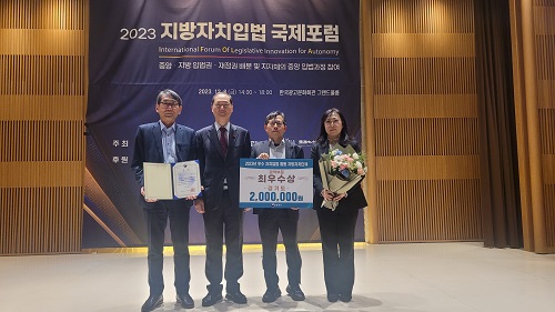 °æ±âµµ°¡ ¹ýÁ¦Ã³ ÁÖ°ü ‘2023³â ¿ì¼ö ÀÚÄ¡ÀÔ¹ýȰµ¿ ÁöÀÚü ¼±Á¤’ ±¤¿ªºÎ¹®¿¡¼ ÃÖ¿ì¼ö»ó ǥâÀ» ¹Þ¾Ò´Ù.