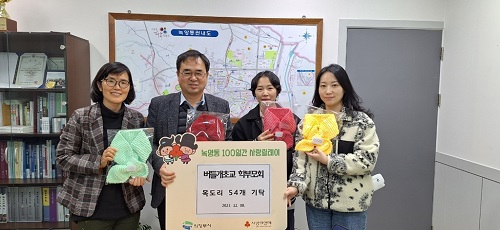 ÀÇÁ¤ºÎ½Ã ³ì¾çµ¿Áֹμ¾ÅÍ(µ¿Àå ÃÖ±¤±Ô)´Â 12¿ù 8ÀÏ ³ì¾çµ¿ ¹öµé°³ÃʵîÇб³ Çкθðȸ(ȸÀå À¯¿¬ÁÖ)°¡ ¾î·Á¿î ÀÌ¿ôÀ» À§ÇØ ¼Õ¶ß°³ÁúÇÑ ¸ñµµ¸® 52°³¸¦ ±âŹÇϸç, ‘100Àϰ£ »ç¶û¸±·¹ÀÌ ¹èÅÏ ÀձⒿ¡ µ¿ÂüÇß´Ù°í ¹àÇû´Ù.