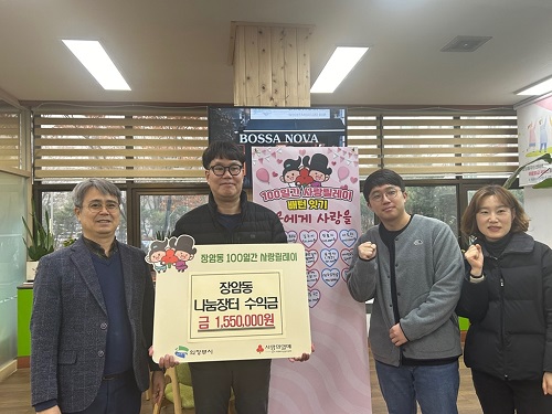 ÀÇÁ¤ºÎ½Ã Àå¾Ïµ¿Áֹμ¾ÅÍ(µ¿Àå Á¶±³¹¬)´Â 12¿ù 15ÀÏ ‘100Àϰ£ »ç¶û¸±·¹ÀÌ ¹èÅÏ ÀձⒿ¡ µ¿ÂüÇØ ¼º±Ý 155¸¸ ¿øÀ» ±âºÎÇß´Ù.