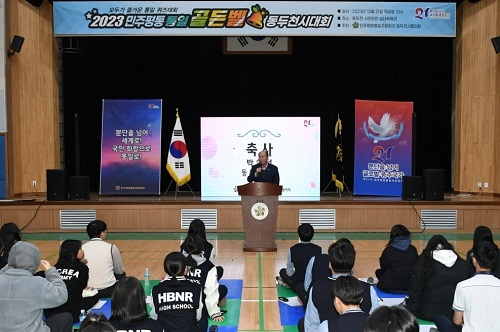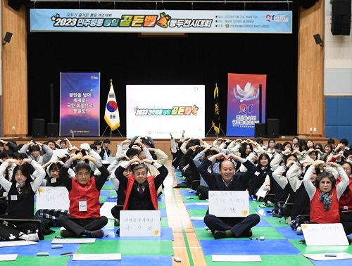 ¹ÎÁÖÆòÈÅëÀÏÀÚ¹®È¸ÀÇ µ¿µÎõ½ÃÇùÀÇȸ(ȸÀå ¹Ú»óÈï)´Â Áö³ 23ÀÏ ½Ã¹Îȸ°ü üÀ°°ü¿¡¼ °ü³» 4°³±³(µ¿µÎõ°íµîÇб³, ÇѺû´©¸®°íµîÇб³, Çѱ¹¹®È¿µ»ó°íµîÇб³, ½ÅÈï°íµîÇб³) Çлý 550¿© ¸íÀÌ Âü¿©ÇÑ °¡¿îµ¥ ‘2023 ¹ÎÁÖÆòÅë ÅëÀÏ! °ñµçº§’ Çà»ç¸¦ °³ÃÖÇß´Ù.
