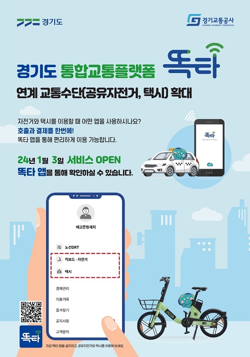 °æ±âµµ¿Í °æ±â±³Åë°ø»ç´Â µµ¹Î À̵¿ ÆíÀǸ¦ À§ÇØ ¶ÈŸ ¾Û¿¡¼ ¿©·¯ ¸ðºô¸®Æ¼¸¦ ÀÌ¿ëÇÒ ¼ö ÀÖµµ·Ï ÃßÁø ÁßÀ¸·Î ±× ½ÃÀÛÀ¸·Î ³»³â 1¿ùºÎÅÍ °øÀ¯ÀÚÀü°Å¿Í Åýà ÀÌ¿ë ¼ºñ½º¸¦ Á¦°øÇÑ´Ù.
