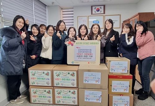 ÀÇÁ¤ºÎ½Ã ¼Û»ê1µ¿Áֹμ¾ÅÍ(µ¿Àå À̼ºÈñ)´Â 12¿ù 22ÀÏ °í»ê¾Æ¶ì¾î¸°ÀÌÁý(¿øÀå ±èÁø¼ø)°ú °í»ê´Ù¿Â¾î¸°ÀÌÁý(¿øÀå Àå¼±¹Ì)ÀÌ ¼ºÅºÀýÀ» ¸Â¾Æ ‘100Àϰ£ »ç¶û¸±·¹ÀÌ ¹èÅÏ ÀÕ±â’ÀÇ ÀÏȯÀ¸·Î ¶ó¸é 735°³¸¦ Àü´ÞÇß´Ù°í ¹àÇû´Ù.