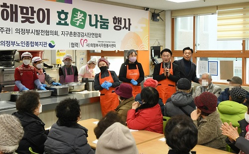 ÀÇÁ¤ºÎ½Ã(½ÃÀå ±èµ¿±Ù)´Â 12¿ù 27ÀÏ Áö±¸ÃÌȯ°æ°¨½Ã´Ü¿¬ÇÕȸ(ȸÀå Àå¼¼¿ë)¿Í ÀÇÁ¤ºÎ½Ã¹ßÀü¿¬´ëÇùÀÇȸ(ȸÀå Á¤¿¬¼ö)°¡ ÀÇÁ¤ºÎ³ëÀÎÁ¾ÇÕº¹Áö°ü 2Ãþ °æ·Î½Ä´ç¿¡¼ È¿³ª´® ±Þ½ÄºÀ»ç¸¦ ÁøÇàÇß´Ù°í ¹àÇû´Ù.