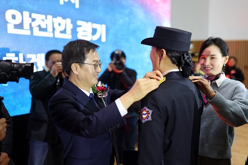 ±èµ¿¿¬ Áö»ç´Â °Ý·Á»ç¸¦ ÅëÇØ “¾î·Á¿î ÀÓ¿ë½ÃÇè°ú Èûµç ÈÆ·Ã °úÁ¤À» ¸¶Ä¡°í °æ±âµµÀÇ ÀÚ¶û½º·¯¿î ¼Ò¹æ°üÀÌ µÈ °ÍÀ» Áø½ÉÀ¸·Î ÃàÇÏÇÑ´Ù”¸ç “¼¼°è ¾î´À ³ª¶ó¸¦ ¸··ÐÇϰí Á¸°æ¹Þ´Â Á÷¾÷ 1µî ÇÏ¸é ¼Ò¹æ°üÀÌ »ÌÈù´Ù. ¿À´ÃÀÇ ÃʽÉÀ» ÀØÁö ¸¶½Ã°í °æ±âµµ¸¦ Ã¥ÀÓÁö´Â µçµçÇÑ ±âµÕÀÌ µÇ¾îÁֱ⠹ٶõ´Ù”°í ¸»Çß´Ù.
