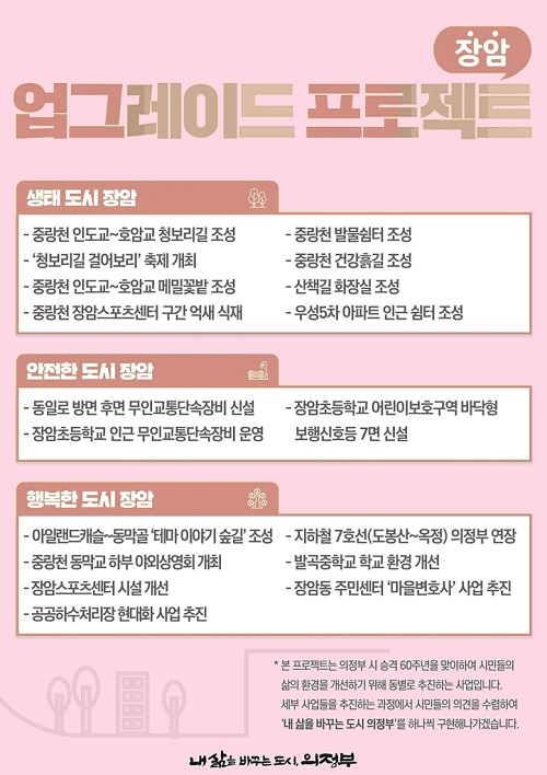 ÀÇÁ¤ºÎ½Ã(½ÃÀå ±èµ¿±Ù)´Â ½Ã ½Â°Ý 60ÁÖ³âÀ» ¸ÂÀÌÇØ ½Ã¹ÎµéÀÇ »îÀÇ È¯°æÀ» ÇÑ ´Ü°è °³¼±Çϱâ À§ÇÑ ‘ÀÇÁ¤ºÎ ¾÷±×·¹À̵å ÇÁ·ÎÁ§Æ®’ÀÇ Àå¾ÏÆí ¼¼ºÎ°èȹÀ» 29ÀÏ ¹ßÇ¥Çß´Ù.