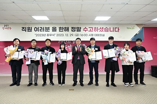 ¾çÁÖ½Ã(½ÃÀå °¼öÇö)°¡ 2023³âµµ ¹Î¿øÃ³¸® ¸¶Àϸ®Áö ¿ì¼ö°ø¹«¿ø 12¸íÀ» ¼±¹ßÇϰí Áö³ 29ÀÏ Á¾¹«½Ä¿¡¼ »óÀå ¼ö¿©½ÄÀ» °¡Á³´Ù.