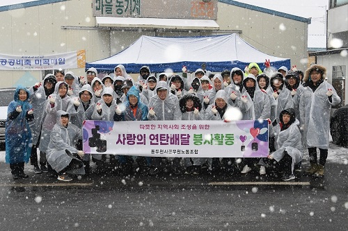 À̳¯ ¿¬Åº ³ª´® ºÀ»ç´Â ¹ÚÇü´ö ½ÃÀå, µ¿µÎõ½Ã °ø¹«¿ø³ëµ¿Á¶ÇÕ È¸¿ø µî 80¿© ¸íÀÌ Âü¿©ÇØ ¼Ò¿Ü°èÃþ 7°¡±¸¿¡ ÃÑ 2,0OOÀåÀÇ ¿¬ÅºÀ» Àü´ÞÇϸç ÈÆÈÆÇÑ »ç¶ûÀÇ ¸¶À½À» ÀüÇß´Ù.