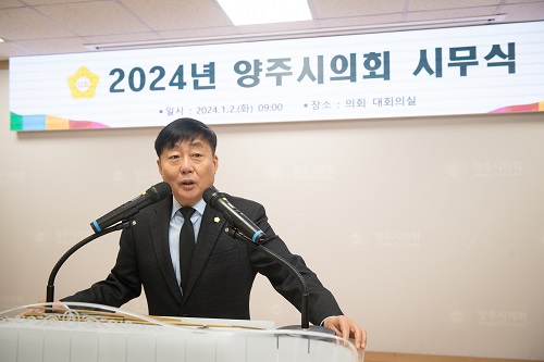 À±Ã¢Ã¶ ÀÇÀåÀÌ 1¿ù 2ÀÏ ¿ÀÀü, ¾çÁÖ½ÃÀÇȸ ´ëȸÀǽǿ¡¼ ¿¸° 2024³â ½Ã¹«½Ä¿¡¼ ½Å³â»ç¸¦ ¹ßÇ¥Çϰí ÀÖ´Ù.