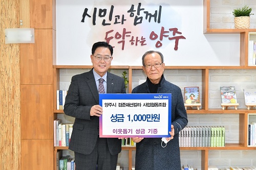 ¾çÁÖ½Ã(½ÃÀå °¼öÇö)´Â Áö³ 4ÀÏ ¾çÁֽà °ËÁØÆÐ¼ÇÄ®¶ó »ç¾÷Çùµ¿Á¶ÇÕ(ÀÌ»çÀå ÀÌÁøÈï)¿¡¼ ½ÃûÀ» ¹æ¹®ÇØ ÀÌ¿ôµ½±â ¼º±ÝÀ¸·Î 1,000¸¸ ¿øÀ» ±âºÎÇß´Ù°í ¹àÇû´Ù.