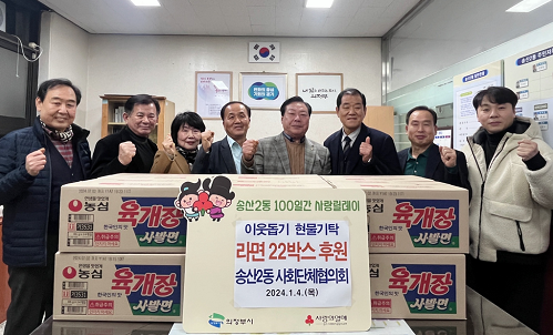 ÀÇÁ¤ºÎ½Ã ¼Û»ê2µ¿Áֹμ¾ÅÍ(µ¿Àå ÀÌÇü¼ø)´Â 1¿ù 4ÀÏ ¼Û»ê2µ¿ »çȸ´ÜüÇùÀÇȸ(ȸÀå ÀÌ»óºØ)°¡ Àú¼ÒµæÃþ¿¡ Àü´ÞÇØ ´Þ¶ó¸ç À§¿øµé°ú ÇÔ²² ÄŶó¸é 22»óÀÚ(528°³)¸¦ ±âºÎÇß´Ù°í ¹àÇû´Ù.