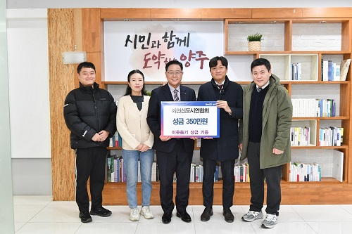 ¾çÁÖ½Ã(½ÃÀå °¼öÇö)´Â Áö³ 5ÀÏ È¸Ãµ½Åµµ½Ã¿¬ÇÕȸ(ȸÀå °¼±¹Î)¿¡¼ ½ÃûÀ» ¹æ¹®ÇØ ¾çÁֽà ¾î·Á¿î ÀÌ¿ôÀ» À§ÇØ ½á´Þ¶ó¸ç ¼º±Ý 350¸¸¿øÀ» ±âºÎÇß´Ù°í ¹àÇû´Ù.