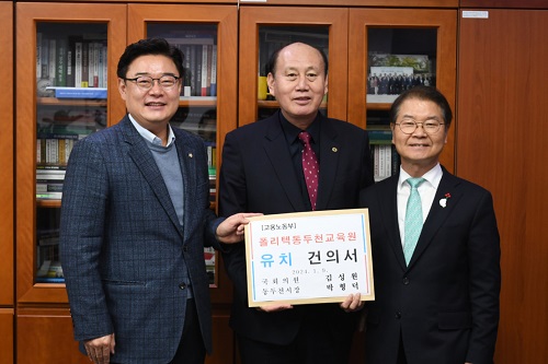 ¹ÚÇü´ö µ¿µÎõ½ÃÀåÀº Áö³ 9ÀÏ ±è¼º¿ø ±¹È¸ÀÇ¿ø »ç¹«½ÇÀ» ¹æ¹®ÇÏ¿© ±¹È¸ÀÇ¿ø°ú ÇÔ²² ÀÌÁ¤½Ä °í¿ë³ëµ¿ºÎÀå°ü¿¡°Ô Æú¸®ÅØ µ¿µÎõ±³À°¿ø À¯Ä¡¸¦ °·ÂÈ÷ Èñ¸ÁÇÏ´Â °ÇÀǼ¸¦ Àü´ÞÇß´Ù.
