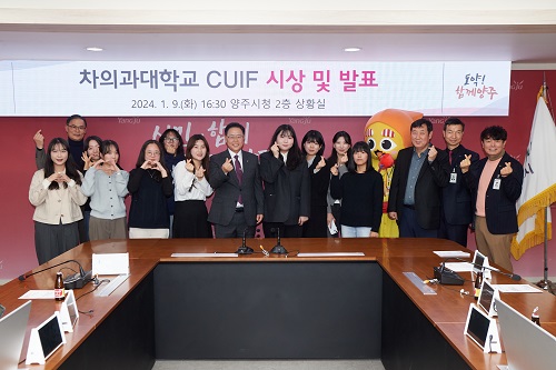 ¾çÁÖ½Ã(½ÃÀå °¼öÇö)°¡ Áö³ 9ÀÏ ¿ÀÈÄ ¾çÁÖ½Ãû »óȲ½Ç¿¡¼ Â÷Àǰú´ëÇб³(ÃÑÀå ±èµ¿ÀÍ) ÀÇ·áÈ«º¸¹Ìµð¾îÇаú¿Í °øµ¿À¸·Î °³ÃÖÇÑ ‘Á¦11ȸ CHA University Idea Festival(ÀÌÇÏ Á¦11ȸ CUIF)’ÀÇ ½Ã»ó½ÄÀ» °³ÃÖÇß´Ù°í ¹àÇû´Ù.