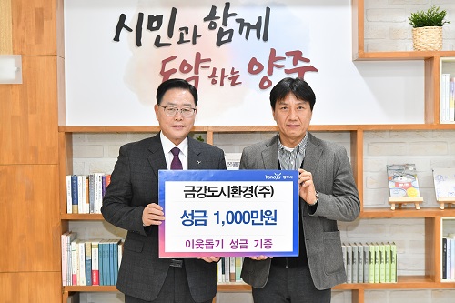 ¾çÁÖ½Ã(½ÃÀå °¼öÇö)´Â Áö³ 9ÀÏ °ü³» ÀºÇö¸é ¼ÒÀç ±â¾÷ ±Ý°µµ½Ãȯ°æ¢ß(´ëÇ¥ ³²°æÈ£)¿¡¼ ½ÃûÀ» ¹æ¹®ÇØ ÀÌ¿ôµ½±â ¼º±Ý 1,000¸¸ ¿øÀ» ±âºÎÇß´Ù°í ¹àÇû´Ù.