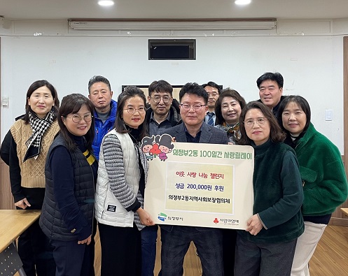 ÀÇÁ¤ºÎ½Ã ÀÇÁ¤ºÎ2µ¿Áֹμ¾ÅÍ(µ¿Àå ÀÌ¿µ¼®)´Â 1¿ù 8ÀÏ ÀÇÁ¤ºÎ2µ¿ Áö¿ª»çȸº¸ÀåÇùÀÇü(À§¿øÀå ¿ì¹ÌÀÚ)°¡ ¼º±Ý 20¸¸ ¿øÀ» ±âºÎÇÏ¸ç ‘100Àϰ£ »ç¶û¸±·¹ÀÌ ¹èÅÏ ÀձⒿ¡ µ¿ÂüÇß´Ù°í ¹àÇû´Ù.