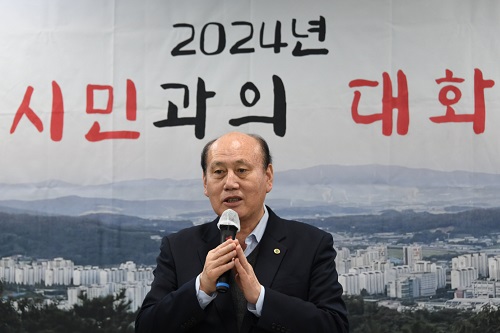 À̳¯ ½Ã¹Î°úÀÇ ´ëÈ´Â ¹ÚÇü´ö ½ÃÀå, ±è¼º¿ø ±¹È¸ÀÇ¿ø, ±è½ÂÈ£ ½ÃÀÇÀå, ½Ã·µµÀÇ¿ø ¹× »ý¿¬2µ¿ ÁֹΠ60¿© ¸íÀÌ Âü¼®ÇÑ °¡¿îµ¥ ÁøÇàµÆ´Ù. Çà»ç ¼ø¼´Â µ¿µÎõ½Ã 2024³â ½ÃÁ¤ ¿î¿µ»çÇ׿¡ ´ëÇÑ ¼³¸í°ú ½Ã¹Î °ÇÀÇ ¹× Á¤Ã¥ Á¦¾È»çÇ× Ã»Ãë, ´äº¯ ¼øÀ¸·Î ÁøÇàµÆ´Ù.