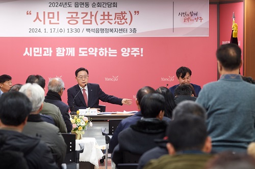 °©Áø³â »õÇØ¸¦ ¸ÂÀÌÇØ ½ÃÀÛÇÑ 2024³â À¾¸éµ¿ ¼øÈ¸°£´ãȸ‘½Ã¹Î °ø°¨(ÍìÊï)’Àº 2024³â ¾çÁÖ½ÃÀÇ ½ÃÁ¤ ÃßÁø ¹æÇâÀ» ½Ã¹Î°ú °øÀ¯Çϰí, ½Ã¹ÎµéÀÇ ¸ñ¼Ò¸®¸¦ ½ÃÁ¤¿¡ Àû±Ø ¹Ý¿µÇϱâ À§ÇØ ¸¶·ÃÇß´Ù.