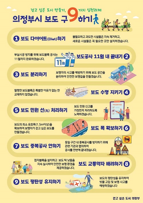 ÀÇÁ¤ºÎ½Ã(½ÃÀå ±èµ¿±Ù)´Â º¸ÇàÀÚ Áß½ÉÀÇ °È°í ½ÍÀº µµ½Ã¸¦ ¸¸µé°íÀÚ 9°¡Áö ½Çõ °úÁ¦ÀÎ ‘ÀÇÁ¤ºÎ½Ã º¸µµ ±¸Çϱ⒠Á¤Ã¥À» ¹ßÇ¥ÇÏ°í ¿ÃÇØºÎÅÍ ½ÇõÇÑ´Ù°í 5ÀÏ ¹àÇû´Ù.