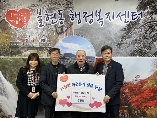 µ¿µÎõ½Ã ºÒÇöµ¿ °ü³» Àå¿ë¿ø ¾î¸£½ÅÀÌ 1ÀÏ, ¼³ ¸íÀýÀ» ¾ÕµÎ°í ¾î·Á¿î ÀÌ¿ô¿¡°Ô ÀüÇØ´Þ¶ó¸ç ÀÌ¿ôµ½±â ¼º±Ý 50¸¸¿øÀ» ±âºÎÇß´Ù.