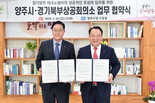 °¼öÇö ¾çÁÖ½ÃÀåÀÌ 16ÀÏ ¿ÀÈÄ ‘°æ±âºÏºÎ»ó°øÈ¸ÀǼÒ(ȸÀå ÃÖ±Ù¼ö)’¿Í ‘°æ±â¾çÁÖ Å×Å©³ë¹ë¸® ÀÔÁÖ ¹× »óÈ£ Çù·ÂÀ» À§ÇÑ ¾÷¹«Çù¾à(MOU)’À» ü°áÇß´Ù.