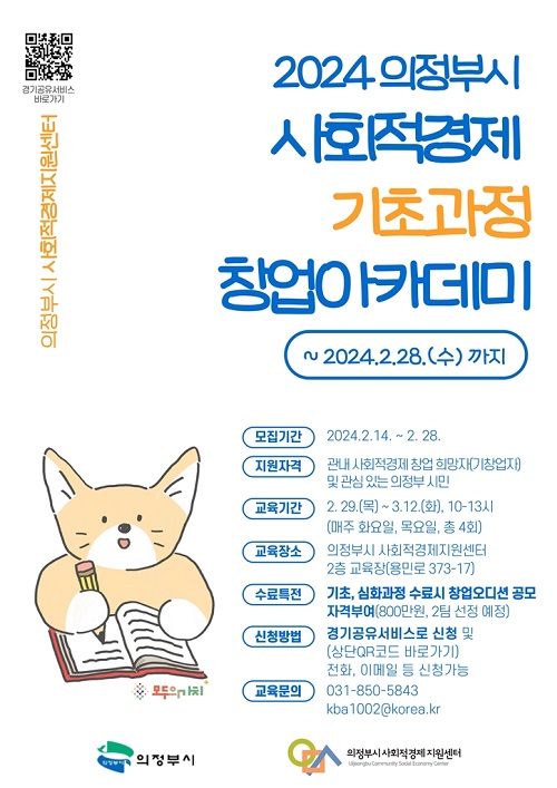 ±³À°ºñ´Â Àü¾× ¹«·áÀ̸ç, °æ±â°øÀ¯¼ºñ½º(https://share.gg.go.kr/)¿Í À¥ÀÚº¸ ³» Å¥¾ËÄÚµå·Î ½ÅûÇÏ¸é µÈ´Ù. ÀÚ¼¼ÇÑ »çÇ×Àº ½Ã ȨÆäÀÌÁö °í½Ã°ø°í¸¦ Âü°íÇϰųª, ÀÇÁ¤ºÎ½Ã »çȸÀû°æÁ¦Áö¿ø¼¾ÅÍ È¨ÆäÀÌÁö ¹× ÀüÈ(031-850-5843)·Î È®ÀÎÇÒ ¼ö ÀÖ´Ù.
