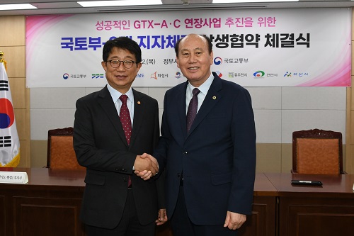 ¹ÚÇü´ö µ¿µÎõ½ÃÀåÀº ±¹Åä±³ÅëºÎ ´ëȸÀǽǿ¡¼ ¹Ú»ó¿ì ±¹Åä±³ÅëºÎÀå°üÀ» ºñ·ÔÇØ ±èÅÂÈì ÃæÃ»³²µµÁö»ç, ¿ÀÈļ® °æ±âµµ ÇàÁ¤2ºÎÁö»ç, °ü·Ã ÁöÀÚüÀåÀÌ Âü¼®ÇÑ °¡¿îµ¥ ‘¼öµµ±Ç±¤¿ª±ÞÇàöµµ(GTX)-C³ë¼± ¿¬ÀåÀ» À§ÇÑ »ó»ýÇù·Â Çù¾à'À» ü°áÇß´Ù.