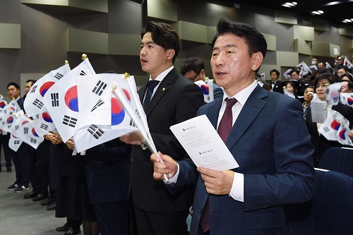 ±èµ¿±Ù ½ÃÀåÀº “³ª¶ó¿Í ¹ÎÁ·À» À§ÇØ Çå½ÅÇϽмø±¹¼±¿²² °æÀǸ¦ Ç¥ÇÑ´Ù. 3‧1¿îµ¿ÀÇ ÅëÇÕÁ¤½ÅÀ¸·Î ¸ðµÎ°¡ ÈûÀ» ¸ð¾Ò´ø °Íó·³ ½Ã¹Î°ú ÇÔ²² Çϳª µÇ´Â ÀÇÁ¤ºÎ½Ã¸¦ ¸¸µé±â À§ÇØ ³ª¾Æ°¡±æ ¹Ù¶õ´Ù”¸ç, “¾ÕÀ¸·Î ±¹°¡À¯°øÀÚµéÀÌ ÀÚ±à½ÉÀ» °¡Áú ¼ö ÀÖµµ·Ï ¼¼½ÉÇÑ º¸ÈÆÁ¤Ã¥À» ÅëÇØ ¸í¿¹ ¼±¾ç¿¡ Èû¾²°Ú´Ù”°í ¸»Çß´Ù.