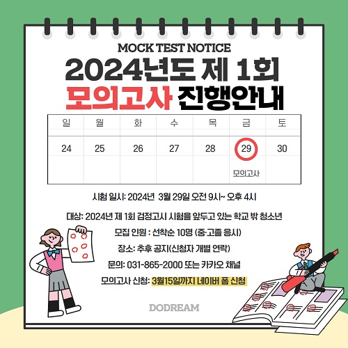 µ¿µÎõ½Ã Çб³¹Ûû¼Ò³âÁö¿ø¼¾ÅÍ(¼¾ÅÍÀå Ȳ»ó¿¬)´Â 2024³âµµ Á¦1ȸ °ËÁ¤°í½Ã¿¡ ÀÀ½ÃÇÏ´Â Çб³ ¹Û û¼Ò³âÀ» ´ë»óÀ¸·Î ‘Á¦1ȸ ²Þµå¸² ¸ðÀǰí»ç’¸¦ ½Ç½ÃÇÑ´Ù.
