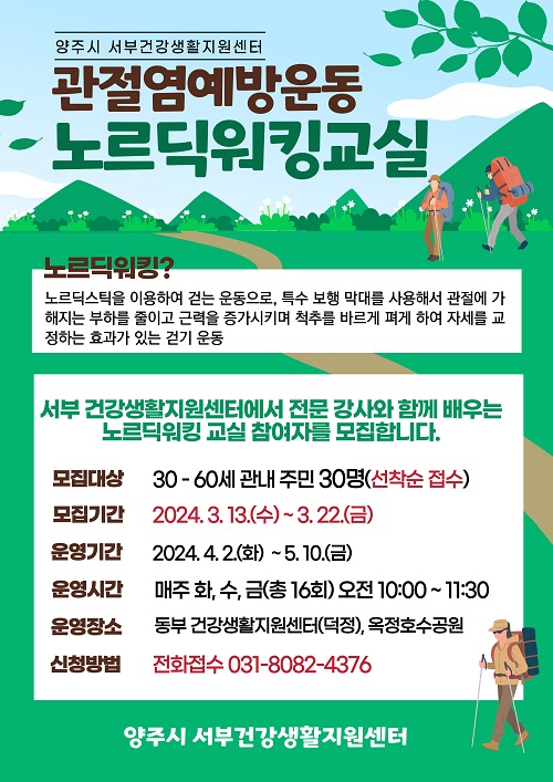 ¾çÁÖ½Ã(½ÃÀå °¼öÇö)°¡ ¿À´Â 13ÀϺÎÅÍ 22ÀϱîÁö ¼ºÎ °Ç°»ýȰÁö¿ø¼¾ÅÍ¿¡¼ °ü³» 30¼¼ºÎÅÍ 60¼¼ ½Ã¹ÎÀ» ´ë»óÀ¸·Î °üÀý¿° ¿¹¹æ ¿îµ¿ ±³½Ç ‘³ë¸£µñ¿öÅ·’ 1±â Âü¿©ÀÚ¸¦ ¼±Âø¼ø ¸ðÁýÇÑ´Ù.