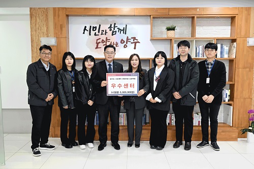¾çÁÖ½ÃÀÚ¿øºÀ»ç¼¾ÅÍ(ÀÌ»çÀå °¼öÇö)´Â Áö³ 13ÀÏ °æ±âµµÀÚ¿øºÀ»ç¼¾ÅÍ¿¡¼ ½Ç½ÃÇÑ ‘½Ã±ºÀÚ¿øºÀ»ç¼¾ÅÍ º¯ÈÁö¿ø ÇÁ·ÎÁ§Æ® Æò°¡’¿¡¼ ‘¿ì¼ö¼¾ÅÍ’·Î ¼±Á¤µÆ´Ù°í ¹àÇû´Ù