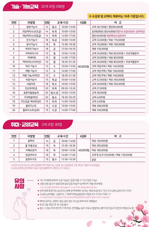 ±³À° ±â°£Àº ¿À´Â 5¿ù 7ÀϺÎÅÍ 8¿ù 23ÀϱîÁö ÃÑ 16ÁÖ°£ ´ë¸é ±³À°À¸·Î ÁøÇàµÉ ¿¹Á¤ÀÌ¸ç ¾çÀå±â´É»ç, ÄÄÇ»ÅÍȰ¿ë´É·Â µî ÀÚ°ÝÁõ Ãëµæ °úÁ¤ÀÎ ±â¼ú‧±â´É±³À° 20°³ °úÁ¤°ú ȨÆÐ¼Ç, ¾Ó±Ý ÄÉÀÌÅ© µî Ãë¹Ì·±³¾ç±³À° 5°³ °úÁ¤À¸·Î ±¸¼ºµÆ´Ù.