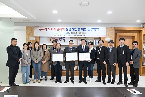 À̹ø Çù¾àÀº Áö³ 29ÀÏ ¾çÁÖ½Ã, ´öÁ¤¸¶À»°ü¸®»çȸÀûÇùµ¿Á¶ÇÕ, ¼Á¤´ëÇб³¿Í °¡Áø 1Â÷ Çù¾à¿¡ ÀÌÀº µÎ ¹øÂ° Çù¾àÀ¸·Î °¼öÇö ¾çÁÖ½ÃÀå, ÃÖÈ£¼º ´öÁ¤ ¸¶À»°ü¸®»çȸÀûÇùµ¿Á¶ÇÕ ÀÌ»çÀå, °í±¤¸ð ¿¹¿ø¿¹¼ú´ë ÃÑÀåÀÌ Âü¼®ÇØ Áö¿ª »ó»ýÀ» À§ÇÑ ±â°ü °£ »óÈ£ Çù·ÂÀ» ¾à¼ÓÇß´Ù.