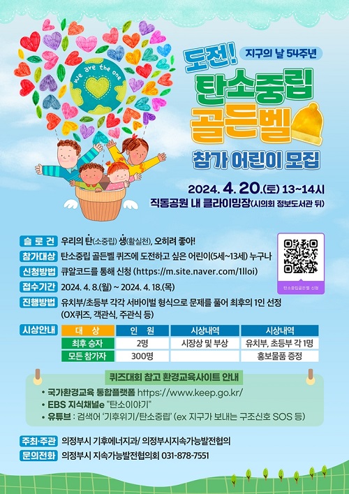 ÀÇÁ¤ºÎ½Ã(½ÃÀå ±èµ¿±Ù)´Â 4¿ù 20ÀÏ Áö±¸ÀÇ ³¯ 54ÁÖ³âÀ» ±â³äÇØ Á¦2ȸ ‘µµÀü! ź¼ÒÁ߸³ °ñµçº§’ ÄûÁî´ëȸ¸¦ °³ÃÖÇÑ´Ù.