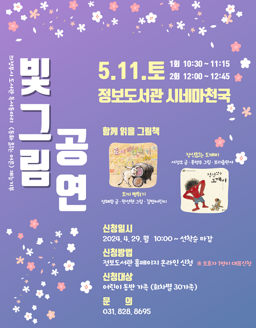 ºû±×¸² °ø¿¬Àº ¾î¸°ÀÌ µ¿¹Ý °¡Á·À» ´ë»óÀ¸·Î 5¿ù 11ÀÏ ¿ÀÀü 10½Ã¿Í ³· 12½Ã ÃÑ 2ȸ ¿î¿µÇÑ´Ù. ȸÂ÷º°·Î ±×¸²Ã¥ 2±ÇÀ» ÇÔ²² Àд´Ù.