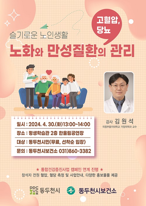 µ¿µÎõ½Ã(½ÃÀå ¹ÚÇü´ö) º¸°Ç¼Ò´Â 2024³â ½Ã¹Î °Ç°°Á ‘½½±â·Î¿î ³ëÀλýȰ:³ëÈ¿Í ¸¸¼ºÁúȯÀÇ °ü¸®(°íÇ÷¾Ð, ´ç´¢)’ ÁÖÁ¦·Î ½Ã¹Î 150¸íÀ» ´ë»óÀ¸·Î ¿À´Â 30ÀÏ Æò»ýÇнÀ°ü 2Ãþ Çѿ︲ °ø¿¬Àå¿¡¼ ½Ç½ÃÇÑ´Ù.