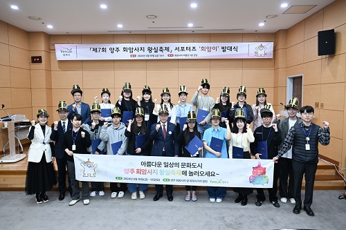 °¼öÇö ¾çÁÖ½ÃÀåÀÌ Áö³ 19ÀÏ °ü³» ȸ¾Ï»çÁö¹Ú¹°°ü¿¡¼ °³ÃÖµÈ ‘Á¦7ȸ ¾çÁÖ È¸¾Ï»çÁö ¿Õ½ÇÃàÁ¦’ ¼Æ÷ÅÍÁî ‘È¸¾ÏÀÌ’ ¹ß´ë½Ä¿¡ Âü¼®Çß´Ù.