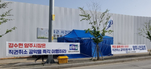 ´õºÒ¾î¹ÎÁÖ´ç ¼Ò¼Ó À̼ºÈ£ ½ÃÀå ÀçÀÓ ½ÃÀý ÀÎÇã°¡°¡ ³ª°£ ¾çÁֽà °í¾Ïµ¿ ¹°·ùâ°í¿¡ ´ëÇØ ¾çÁÖ ¹ÎÁÖ´çÀÌ “°ø»ç¸¦ ¼ö¼ö¹æ°üÇÏ´Â °¼öÇö ½ÃÀåÀ» ±ÔźÇÑ´Ù”¸ç ‘ÅõÀï µ¹ÀÔ’À» ¼±¾ðÇß´Ù. ‘³»·Î³²ºÒÀÇ ³¡’À» º¸¿©ÁÖ°í ÀÖ´Â ¼ÀÀÌ´Ù.