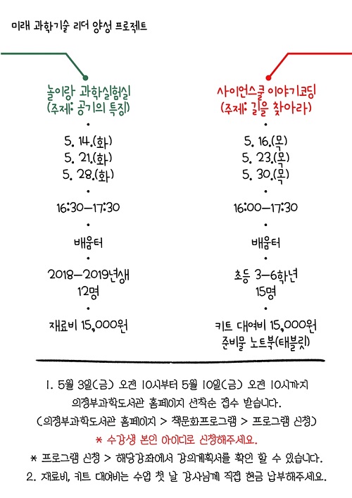 ÀÇÁ¤ºÎ°úÇеµ¼°üÀº ‘5¿ù ¹Ì·¡ °úÇбâ¼ú ¸®´õ ¾ç¼º ÇÁ·ÎÁ§Æ®’ÀÇ ÀÏȯÀ¸·Î 2018~2019³â»ý ´ë»ó ‘³îÀ̶û °úÇÐ ½ÇÇè½Ç’°ú Ãʵî 3~6Çг⠴ë»ó ‘»çÀ̾ð½ºÄð À̾߱âÄÚµù’À» ¿î¿µÇÑ´Ù.