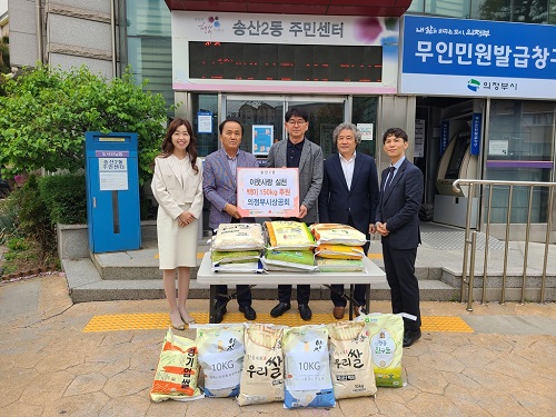 ÀÇÁ¤ºÎ½Ã ¼Û»ê2µ¿Áֹμ¾ÅÍ(µ¿Àå ÀÌÇü¼ø)´Â 4¿ù 25ÀÏ °æ±âºÏºÎ»ó°øÈ¸ÀÇ¼Ò ÀÇÁ¤ºÎ½Ã»ó°øÈ¸(ȸÀå ½Å´ë¿ë)°¡ ¾î·Á¿î ÀÌ¿ô¿¡°Ô Àü´ÞÇØ ´Þ¶ó¸ç ¹é¹Ì 150kgÀ» ±âºÎÇß´Ù°í ¹àÇû´Ù.
