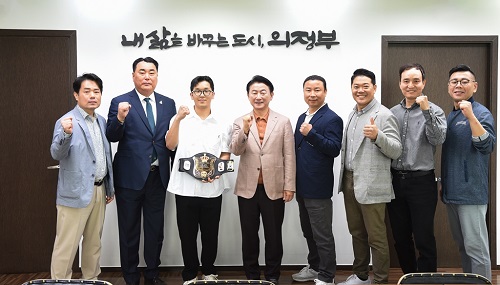 ÀÇÁ¤ºÎ½Ã(½ÃÀå ±èµ¿±Ù)´Â 4¿ù 26ÀÏ Çѱ¹º¹½ÌÄ¿¹Ì¼Ç(KBM) ÁÖ°ü Çѱ¹Å¸ÀÌÆ²¸ÅÄ¡ ¶óÀÌÆ®±Þ¿¡¼ èÇǾðÀ¸·Î µî±ØÇÑ °¼ºÃ¶ ¼±¼ö(ÀÇÁ¤ºÎ½Ã º¹½ÌÇùȸ ¼Ò¼Ó)¸¦ ½ÃÀå½Ç·Î ÃÊÃ»ÇØ °Ý·ÁÇß´Ù.
