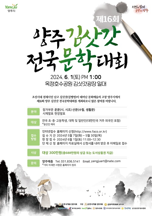Á¶¼±½Ã´ë ÃÖ°íÀÇ Ç³ÀÚ½ÃÀÎ ³°í ±èº´¿¬ÀÌ ÅÂ¾î³ ¹®È·¿¹¼úÀÇ °íÀå ¾çÁֽÿ¡¼ 'Á¦16ȸ ¾çÁÖ ±è»ñ°« Àü±¹ ¹®Çдëȸ'°¡ °³ÃֵȴÙ.