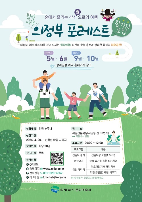 ÀÇÁ¤ºÎ½Ã(½ÃÀå ±èµ¿±Ù)´Â ÀÚ¿¬Ä£È À£´Ï½º °ü±¤¼ºñ½º·Î ±âȹÇÑ ‘ÀÇÁ¤ºÎ Æ÷·¹½ºÆ®: ½£¿¡¼ Áñ±â´Â 4»ö(ßä)À¸·ÎÀÇ ¿©Çà’À» ¼±º¸À̸ç Âü°¡ ½ÅûÀÚ¸¦ ¸ðÁýÇÑ´Ù.