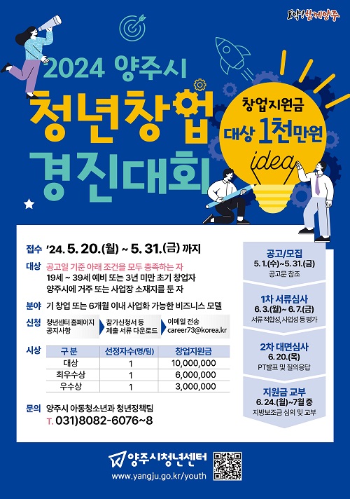 ¾çÁÖ½Ã(½ÃÀå °¼öÇö)´Â °ü³» û³â â¾÷°¡µéÀÇ Çõ½Å ¾ÆÀÌÅÛÀ» ¹ß±¼·À°¼ºÇϱâ À§ÇØ ‘2024³â ¾çÁֽà û³ââ¾÷ °æÁø´ëȸ’¸¦ °³ÃÖÇÑ´Ù°í ¹àÇû´Ù.