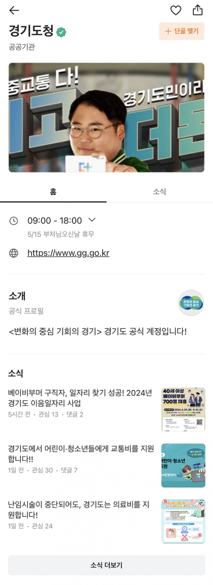 »ç¿ëÀÚ°¡ '°æ±âµµ'¸¦ Ȱµ¿ Áö¿ªÀ¸·Î ¼³Á¤ÇÒ °æ¿ì, 'µ¿³×»ýȰ'À̳ª '³» ±Ùó' °Ô½ÃÆÇ¿¡¼ »õ·Ó°Ô ¿Ã¶ó¿Â µµÁ¤ ¼Ò½ÄÀ» È®ÀÎÇÒ ¼ö ÀÖ´Ù. ƯÈ÷ °ø°øÇÁ·ÎÇʰú ‘´Ü°ñ ¸Î±â’¸¦ ÇÏ¸é ¾Ë¸²À» ¹Þ°Ô µÅ º¸´Ù ºü¸£°Ô °æ±âµµ ¼Ò½ÄÀ» È®ÀÎÇÒ ¼ö ÀÖÀ¸¸ç ´ñ±Û·Î ¼ÒÅëµµ °¡´ÉÇÏ´Ù.