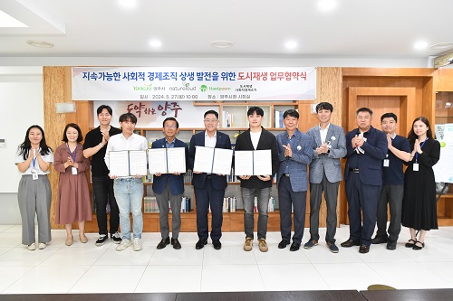 °¼öÇö ¾çÁÖ½ÃÀåÀÌ 27ÀÏ ¿ÀÀü ‘µµ½ÃÀç»ý ¾÷¹«Çù¾à½Ä’¿¡ Âü¼®Çϰí Áö¼Ó °¡´ÉÇÑ »çȸÀû °æÁ¦Á¶Á÷ »ó»ý ¹ßÀüÀ» À§ÇÑ Çù¾àÀ» ü°áÇß´Ù.
