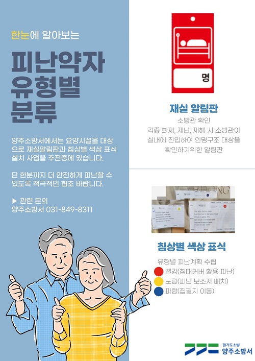 Çdz¾àÀڽü³ÀÎ ³ëÀοä¾ç½Ã¼³Àº °Ç¹° ³» ³»ÀåÀç¤ýÁý±â·ù µî °¡¿¬¼º ¹°Áú·Î ÀÎÇÑ ±Þ°ÝÇÑ ¿¬¼Ò¿Í ¿¬±â È®»êÀÇ À§ÇèÀÌ ÀÖ°í °Åµ¿ÀÌ ºÒÆíÇÑ ³ëÀΠȯÀÚ°¡ ¸¹¾Æ, º´½ÇÀÔ±¸¿¡ Àç½Ç¾Ë¸²ÆÇ ¹× ÀθíÁ¤º¸ ÇöȲÆÇ µîÀ» ºÎÂøÇÏ¿© ½Å¼ÓÇÑ ´ëÇÇ¿Í ÇöÀå´ëÀÀ¿¡ Ȱ¿ëÇÒ °èȹÀÌ´Ù.